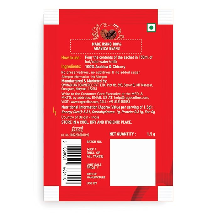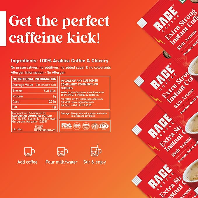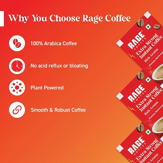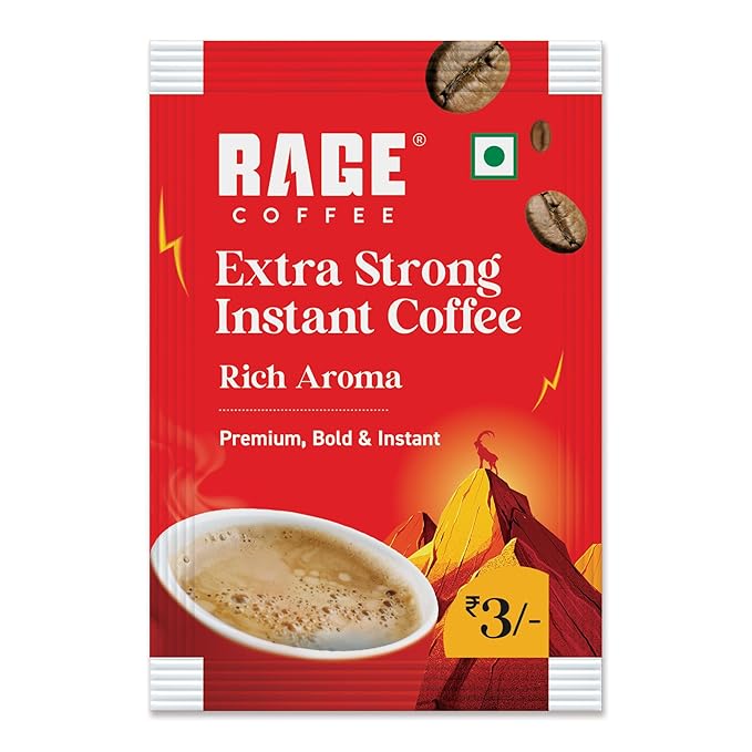 RAGE COFFEE Extra Strong Premium Blend Coffee Powder|Pack Of 100|Premium, Bold & Instant|Instant Coffee & Chicory- 100% Arabica Beans For Hot & Cold Coffee|0.27 Kilograms|Sachets,